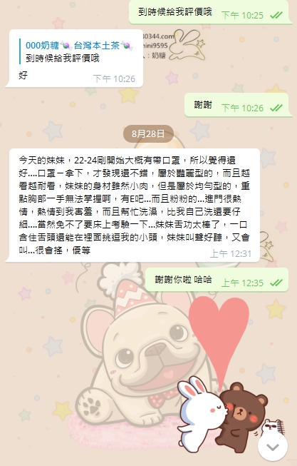 - 客人評價:有女朋友fu 口技不錯 服務很乖.. 玩起來非常帶勁 有感覺 漂亮 叫聲也銷魂